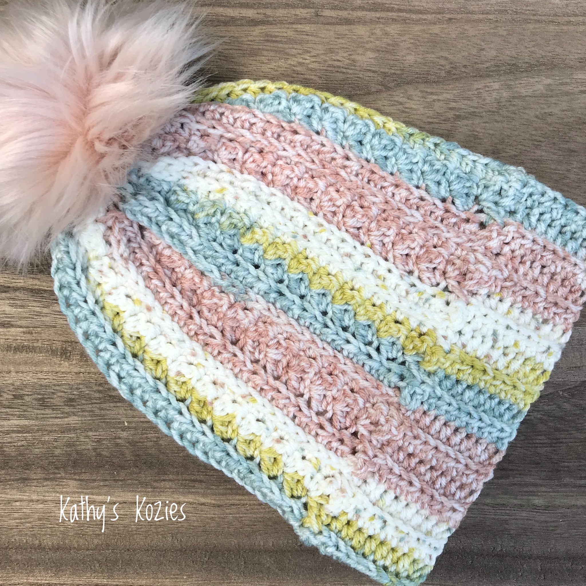 This Beanie is worked vertically and has a slight slouch to it. There is NO SEWING involved (except for weaving in ends) and it will appear seamless! Four sizes are included toddler through Adult. But the pattern can be easily sized smaller or larger if needed.